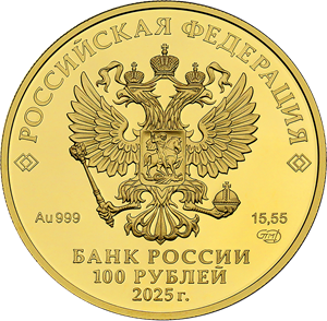 На лицевой стороне монет расположено рельефное изображение Государственного герба Российской Федерации, имеются надписи: «РОССИЙСКАЯ ФЕДЕРАЦИЯ», «БАНК РОССИИ», номинал монет «3 РУБЛЯ», «100 РУБЛЕЙ», дата «2025 г.», обозначение металла по Периодической системе элементов