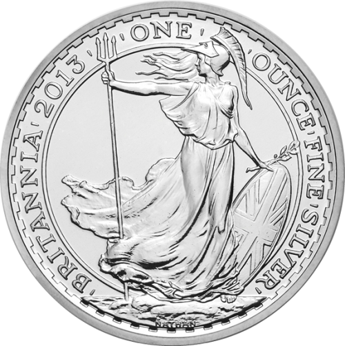 Серебряная монета 2 фунта "Британия" 31.1 грамм, 2013г.,Ag 999