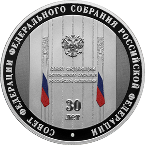 Серебряная монета 3 рубля "30-летие Совета Федерации Федерального Собрания Российской Федерации" 31,1г., 2023г., Ag 925, Proof