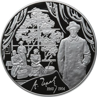 Серебряная монета 100 рублей "150-летие со дня рождения А.П. Чехова" 2010г.,СПМД, 1кг., Ag 925, ПРУФ-ЛАЙК
