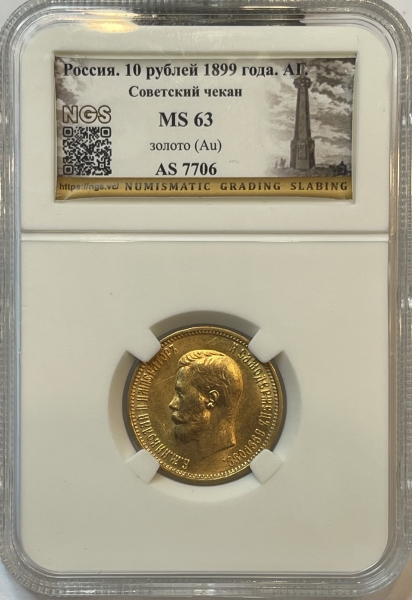Вы всегда можете купить или продать, а также узнать текущую стоимость монеты - 'Золотая монета 10 рублей Николай II 1899г., в слабе NGS MS 63' в г.Ульяновск (Ульяновская область). У нас Вы получите полную и необходимую консультация от квалифицированных специалистов и профессионалов, работающих на рынке инвестиций в драгметаллы уже долгое время. Мы стараемся предложить нашим клиентам лучшие цены выкупа и продажи на рынке (с минимальным спредом), а также гарантируем конфиденциальность всех проводимых сделок.