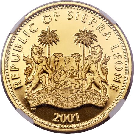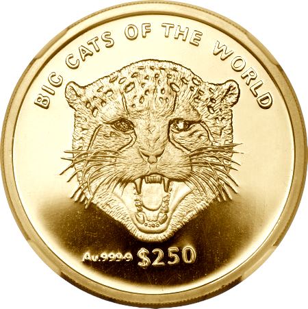 Золотая монета 250 долларов Гепард серия: Крупные кошки мира.,31,1г., 2001г.,Au 999,9 , Сьерра Леоне