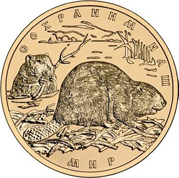 Золотая монета "Речной бобр", 100 рублей, 2008 год