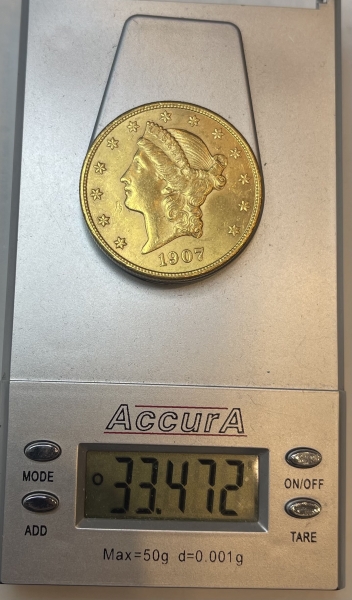 Золотая монета "ГОЛОВА СВОБОДЫ" ОРЕЛ 20 долларов, 1907г. США